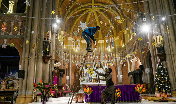 Christians attend the Christmas Mass at Sacred Heart Cathedral Church, in Lahore, Pakistan on December 25, 2024. (AP)