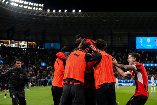 AC Milan came from behind to beat Juventus 2-1 on Friday and set up a showdown with city rivals Inter Milan in the Italian Super Cup final in Riyadh. (AN Photo/Abdulrahman Shulhoub)