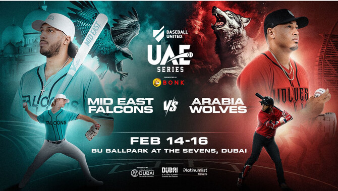 The three-game UAE Series will feature the Dubai-based Arabia Wolves and Abu Dhabi’s Mid East Falcons. The games take place from Feb. 14 to 16 at Baseball United Ballpark, which forms part of The Sevens Sports and Entertainment Complex in Dubai.
