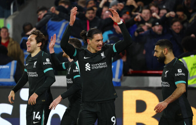 LONDON: Darwin Nunez scored twice in stoppage time as Liverpool beat Brentford 2-0 to strengthen their spot in first place in the Premier League on Saturday.