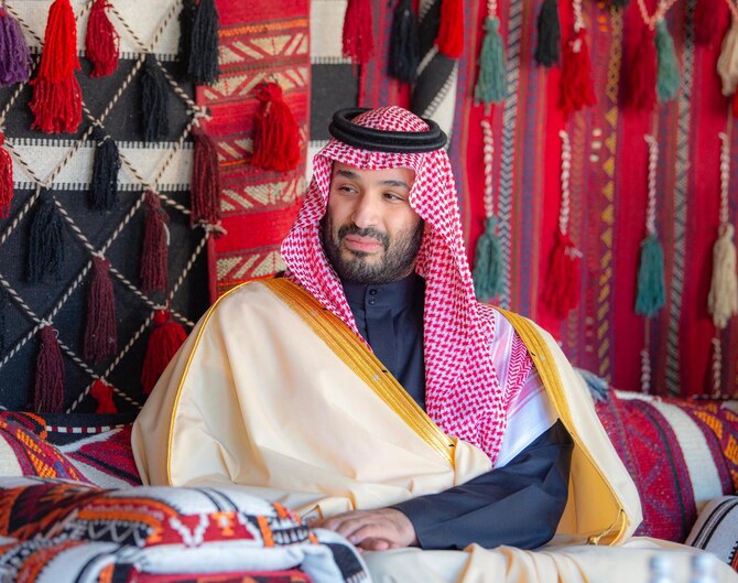 Saudi Arabia’s Crown Prince Mohammed bin Salman is pictured at the winter camp in AlUla on Sunday. (SPA)
