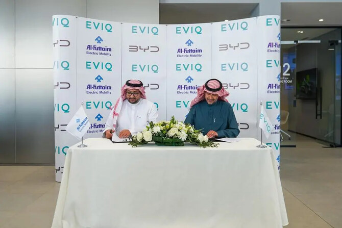 A memorandum of understanding was signed between Electric Vehicle Infrastructure Co. — a joint venture between Saudi Electricity Co. and the Public Investment Fund — and Al-Futtaim Electric Mobility, which has a partnership with Chinese firm BYD.