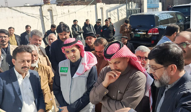 This handout photo, released by Pakistan’s Provincial Disaster Management Authority of Khyber Pakhtunkhwa, shows a delegation of Saudi Fund for Development reviewing agriculture and medical projects in Swat on January 28, 2025. (Handout/PDMA)
