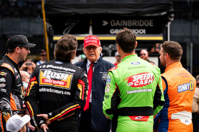 Sunday’s race got underway in front of a sold-out crowd but was halted about an hour later after eight laps because of heavy rain that was expected to cause a lengthy delay. The sport’s fans are seen as leaning conservative and many in the stands on Sunday wore red caps that said “MAGA” for Trump’s “Make America Great Again” slogan. Trump, who watched the race from a suite, also wore a MAGA cap.