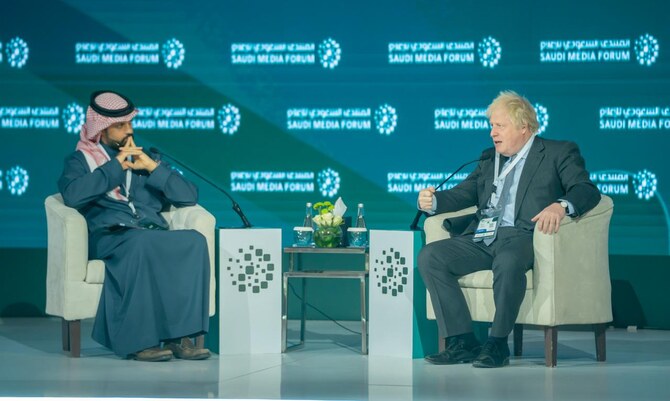 Riyadh: Saudi Arabia’s bold leadership and rapid transformation under Vision 2030 should serve as a model for other nations, former UK prime minister Boris Johnson said today at the Saudi Media Forum in Riyadh.