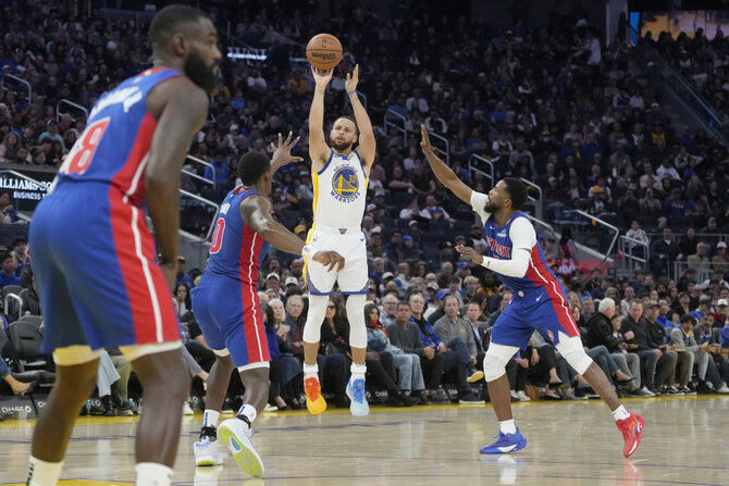 SAN FRANCISCO: Stephen Curry became the 26th player in NBA history to score 25,000 career points, reaching the milestone during the third quarter of the Golden State Warriors’ 115-110 victory over the Detroit Pistons on Saturday night.