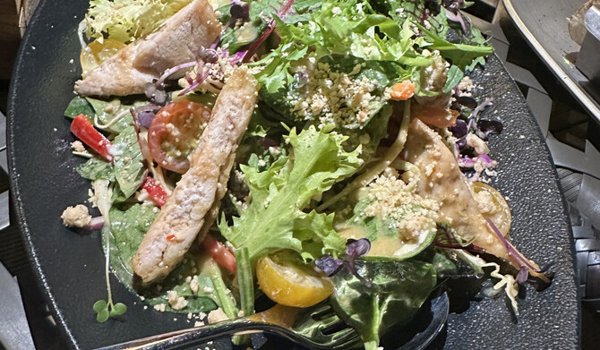 I started with the hazelnut chicken salad, which is made with Chinese cabbage, red chilli, coriander, cucumber, grilled chicken, carrots, peanut sauce and fish sauce. The flavors were well balanced, with a mix of crunch and creaminess.