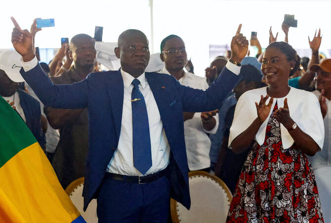 LIBREVILLE: Junta chief Brice Oligui Nguema celebrated a huge victory in Gabon’s presidential election Sunday after provisional results gave him 90.35 percent of the vote.