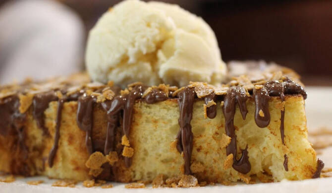 If you are in the mood for brunch or something more savory, you will find hearty options including burgers, pasta and salmon or shrimp served with mashed potatoes and seasonal vegetables.