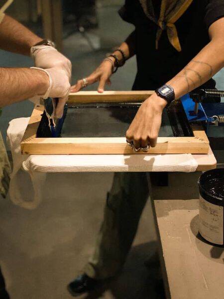 The other section is an on-site, live screen-printing studio where members of the public are able to drop in and learn more about the artists, the ink, and the printing process itself.