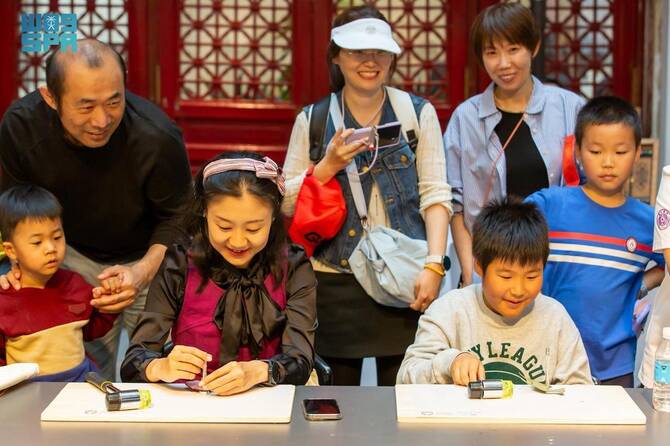 Workshops also showed the art of Najdi decorations on wood, especially Najdi traditional designs on windows, in addition to other workshops displaying traditional Chinese metal crafting of hairpins.