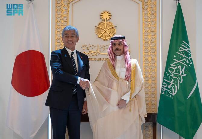 Prince Faisal and Takeshi discussed regional issues, including the necessity of a ceasefire in the Gaza Strip, US-Iran nuclear negotiations, the war in Ukraine and efforts to achieve a two-state solution to end the Israeli-Palestinian conflict.