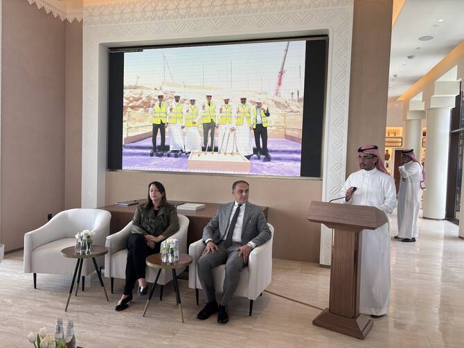 The groundbreaking ceremony at Diriyah Sales Center was attended by senior representatives from the Mohammed bin Salman Foundation (Misk), Diriyah Company, and design partners Zaha Hadid Architects.