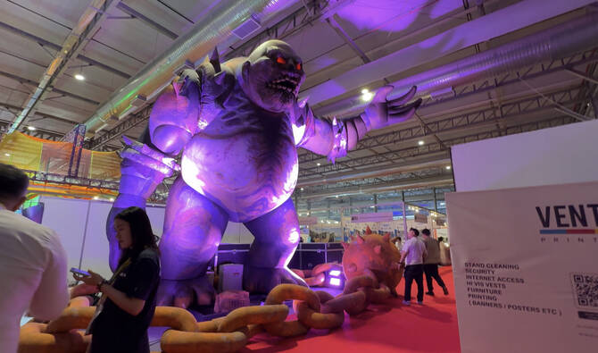 Another of the exhibits on show, and possibly the largest, is a 20-meter tall inflatable ogre, designed and built by Anka Inflatable Co. from Guangzhou in southern China.