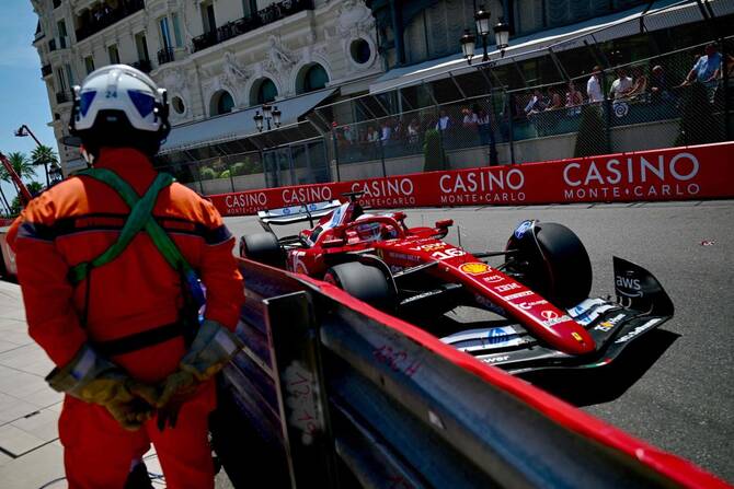 Ferrari and Leclerc are hoping for a repeat of their emotional 2024 triumph, but their mood was spoiled when the Monegasque’s teammate Hamilton crashed on entry to Casino Square to end the session with a red flag.