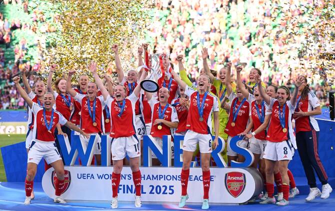 LISBON, : Arsenal forward Stina Blackstenius struck a late winner as the London team shocked holders Barcelona 1-0 on Saturday to claim their second Women’s Champions League title and first in 18 years to the delight of their 5,000 traveling fans.