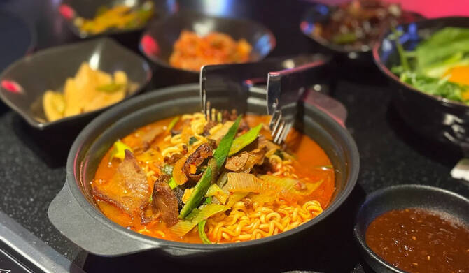 Noodle lovers will appreciate the variety of ramyeon options, from the creamy pink rose version to the brisket ramyeon.