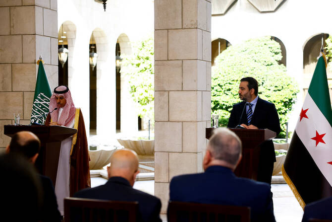 Prince Faisal also met with interim President Ahmed Al-Sharaa on Saturday during his visit and “the high-level economic delegation” held talks with Syrian officials about ways of cooperating “that contribute to supporting Syria’s economy and strengthen institution building.”