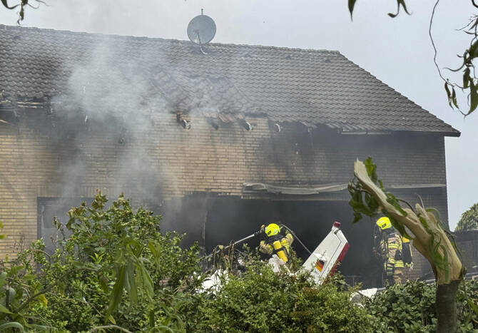 BERLIN: A small plane crashed into the terrace of a residential building in western Germany on Saturday and two people were killed, police said.