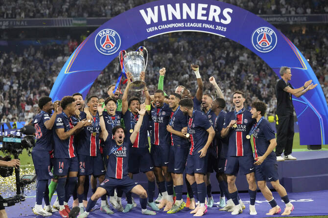 MUNICH, Germany: Paris Saint-Germain won the Champions League for the first time in their history as Luis Enrique’s brilliant young side outclassed Inter Milan on Saturday in the most one-sided final ever and teenager Desire Doue scored twice in an astonishing 5-0 victory.