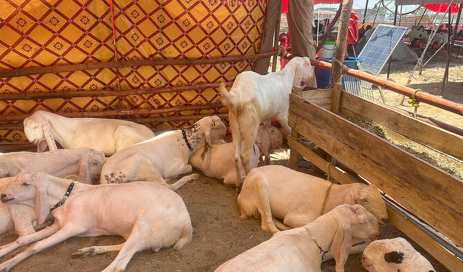 ISLAMABAD: With their snow-white coats, drooping pink ears and regal built, Rajanpuri Nukra goats are turning heads and emptying wallets at Islamabad’s bustling Eid Al-Adha cattle market this year.