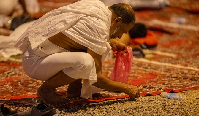 In Muzdalifah, the pilgrims collect pebbles for the stoning of the devil ritual at the Jamarat area in Mina. (AN photo by Huda Bashattah)