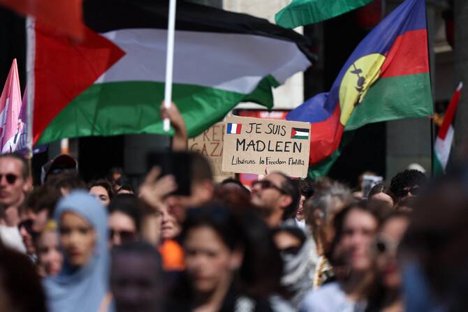 Tens of thousands of people staged rallies after Israel stopped the boat, the Madleen, that was carrying 12 activists.
