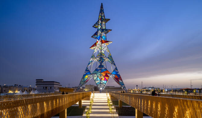 For Gharem, Saudi Arabia’s Vision 2030, like “The Arts Tower,” constantly lifts eyes upward, motivating people to leap from the familiar into the unexpected, pushing them to embrace the future with imagination.