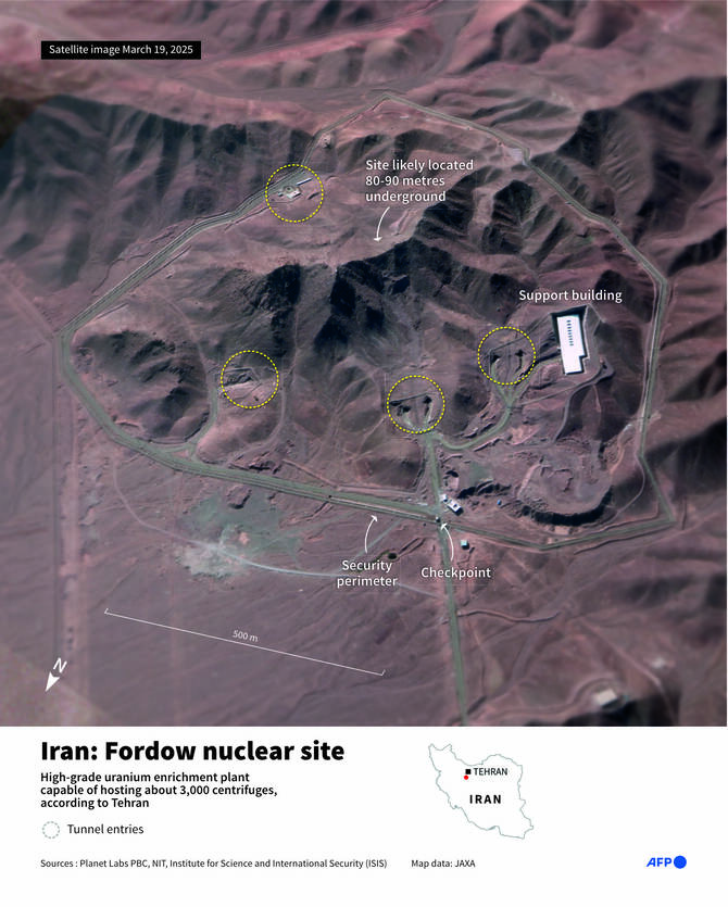 This handout satellite picture provided by Maxar Technologies and taken on June 22, 2025, shows damage after US strikes on the Isfahan nuclear enrichment facility in central Iran. (AFP)