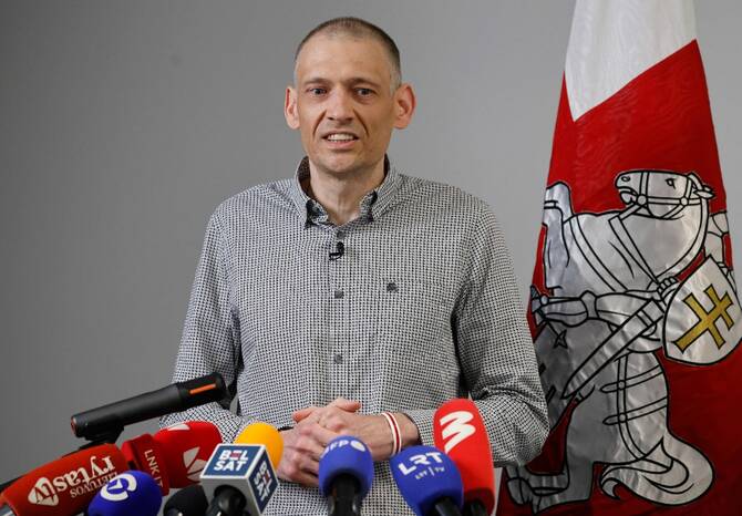 On Saturday, Tsikhnaouski was freed alongside 13 other prisoners and brought to Vilnius, the capital of neighboring Lithuania, where he was reunited with his wife, exiled Belarusian opposition leader Sviatlana Tsikhanouskaya, and their children. Speaking to The Associated Press the day after, Tsikhanouski tries to smile and joke, but struggles to hold back heavy sighs recalling what he endured behind bars.