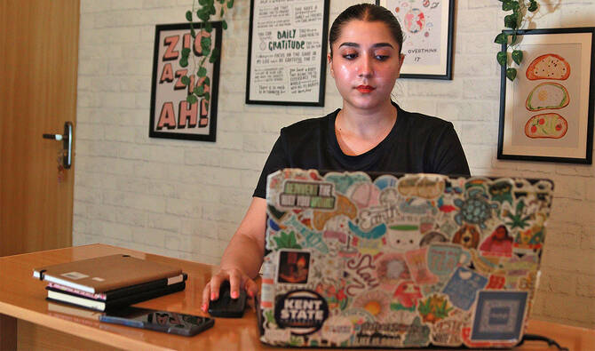 Mehak Rashid, an engineer, is using mobile in Lahore, Pakistan, on May 26, 2025. (AN photo)
