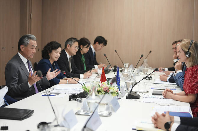 Meeting Kaja Kallas in Brussels on Wednesday, Wang Yi said China and the European Union “should not be regarded as opponents because of differences, nor should they seek confrontation because of disagreements,” according to a Chinese foreign ministry statement.