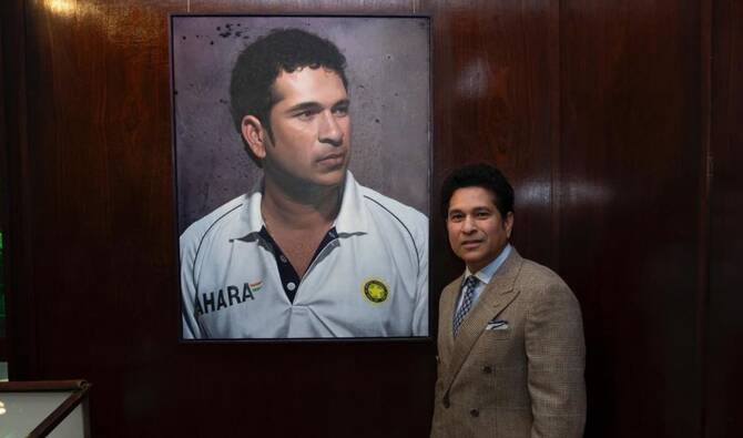 The portrait, by Stuart Pearson Wright, is painted from a photograph taken by the artist in Tendulkar’s home in Mumbai 18 years ago and was unveiled before the first day of the third Test between England and India.