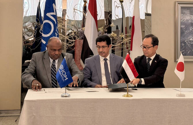 Signing the exchange notes in Riyadh on Sunday alongside Nakashima were Ashraf El Nour, head of the IOM office in Riyadh, and Mansour Bajash, undersecretary for political affairs at Yemen’s Ministry of Foreign Affairs.
