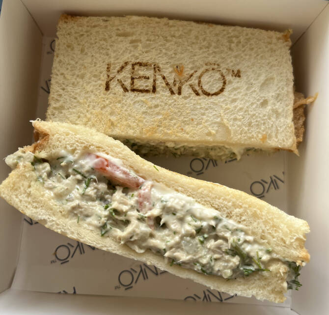 I ordered the tuna sando (SR24, $6). It was crustless and toasted, with Kenko’s name branded onto the top of the bread. The creamy filling was accented by a tangy taste from fresh dill. It came in a box with the lid tucked underneath, a clever design that doubled as a sturdy takeaway container in case you decided mid-bite to save the rest for later.