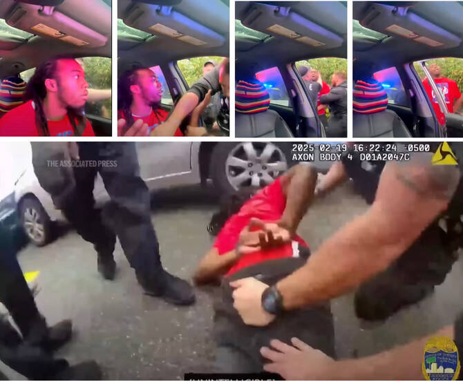 The cellphone footage from the Feb. 19 arrest shows that seconds before being dragged outside, McNeil had his hands up and did not appear to be resisting as he asked, “What is your reason?” He had pulled over and had been accused of not having his headlights on, even though it was daytime, his lawyers said.