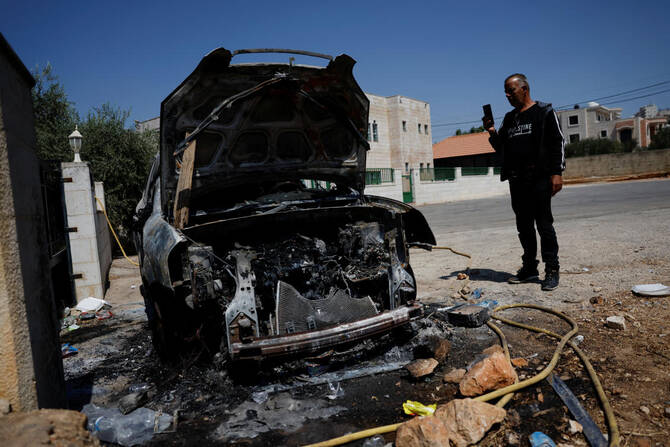 SILWAD, Palestinian Territories: The Palestinian Authority said Israeli settlers set fire to homes and cars in a West Bank village on Thursday, killing one man, in the latest attack in the occupied territory.