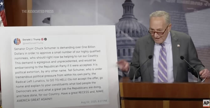 In his parting shot as the Senate adjourned for a recess until September, Schumer said that contrary to Trump’s claim of being master in dealmaking, he said the president threw in the towel “in a fit of rage” after the Democrats refused to budge.