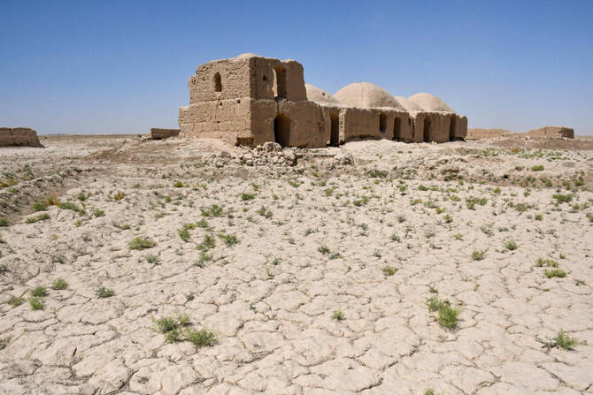 Dome-shaped traditional Afghan houses lie uninhabited owing to chronic water scarcity in the drought-ridden village of Bolak at Chahar Bolak district, Balkh province on July 10, 2025. (AFP)