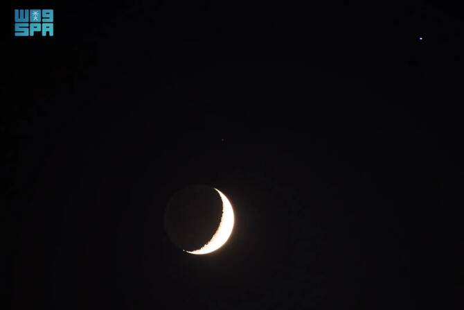 RIYADH: Residents in Saudi Arabia’s Northern Borders region witnessed a striking celestial event on Wednesday evening, as the crescent moon aligned closely with Spica, the brightest star in the Virgo constellation.