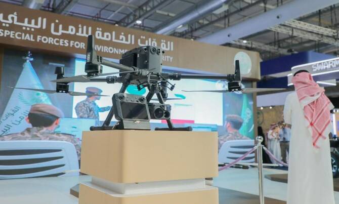The display also featured the falcon drone, specialized in firefighting in high-altitude and hazardous areas, along with drones for monitoring and exploration, the SPA reported.