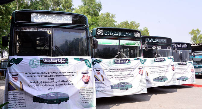 ISLAMABAD: Saudi Arabia has presented four buses to the International Islamic University Islamabad (IIUI) to help transport students and staff around the federal capital, the institution said on Tuesday.