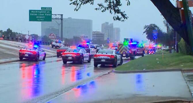 Officers responded to a call to assist an officer on North Stemmons Freeway around 6:40 a.m. Wednesday and determined that someone opened fire at a government building from an adjacent building, Dallas police spokesperson Officer Jonathen E. Maner said in an email.