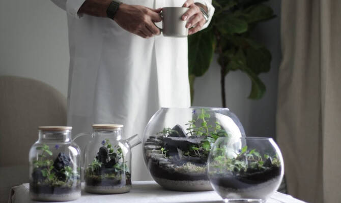 In this cozy cafe, guests can sip their favorite specialty drinks while also experiencing the joy of making terrariums.