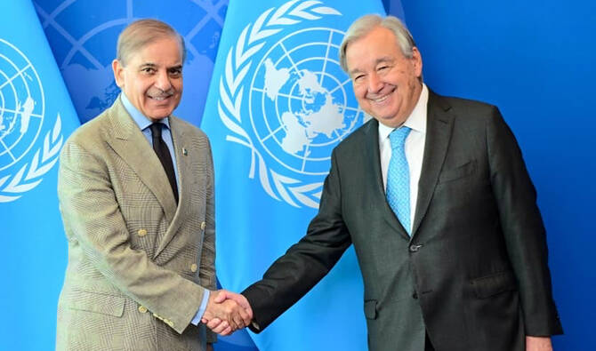 ISLAMABAD: Prime Minister Shehbaz Sharif has met United Nations (UN) Secretary-General António Guterres and urged him to play his role for a ceasefire in Gaza and ensure delivery of humanitarian aid to the territory, Sharif’s office said on Saturday.