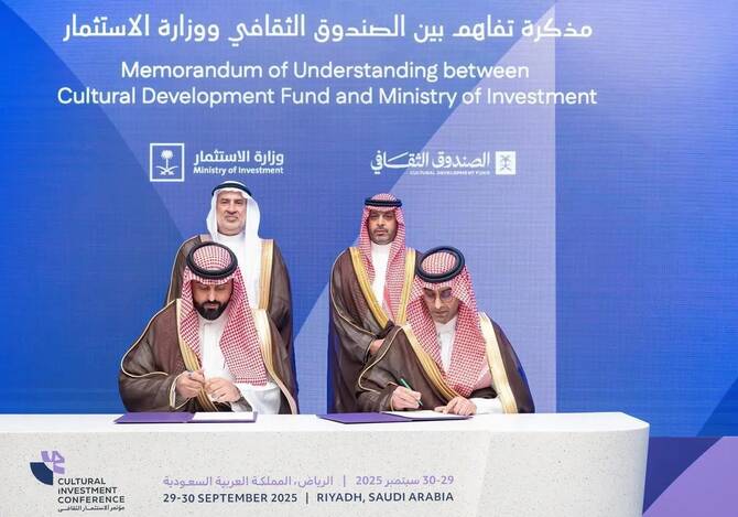 RIYADH: The Ministry of Investment has signed a memorandum of understanding with the Cultural Development Fund to explore areas of cooperation in cultural investment and attract international companies to the Saudi cultural sector.