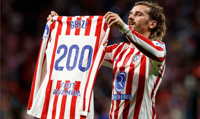 - Griezmann eventually reached his milestone with a strike from close range in first-half stoppage time, celebrating with an Atletico shirt bearing “200” on the back as the club’s record goalscorer