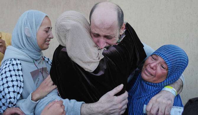 KHAN YOUNIS: Thousands of Palestinians erupted with joy in the southern Gaza city of Khan Younis on Monday, as Red Cross buses brought back nearly 1,700 former prisoners.