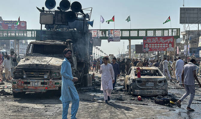 LAHORE, Pakistan: A clash between Pakistan authorities and thousands of protesters marching in support of Palestinians killed at least five people including a police officer and injured dozens of other officers on Monday, police and witnesses said.