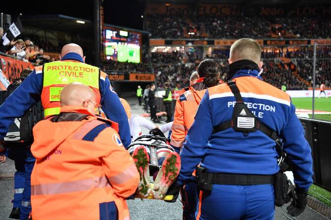 The 20-year-old left the pitch in the 62nd minute during the 1-1 draw in Lorient on Wednesday, after halting his run and screaming out in pain. He was then carried off on a stretcher before leaving the stadium on crutches.